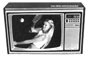 进化到这里,电视机终于可以搬上桌面了:摆脱了“巨无霸式”的外形。它有点像现在的台式电脑,但感觉基底是固定在桌面上:是不是有点像一个裹着头巾的少妇的头?