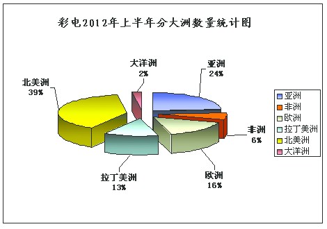 从主要出口国家看,2012年上半年,中国内地出口彩电的主要目的市场是美国、日本、俄罗斯、香港,其中美国仍为第一目的市场。