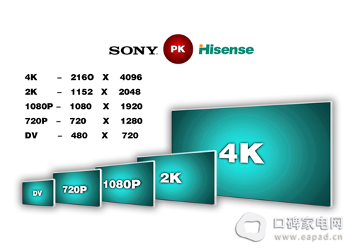 4K电视目前被誉为目前世界最先进的电视机,其含义为显示分辨率的水平像素点达到1024的4倍,其清晰度相当于应用最多的35毫米胶片。采用4K电视播放电影,就相当于电影拍摄的原片效果,在清晰度跟质感方面有其他分辨率产品无法比拟的优势。通俗地说,你即使坐在电视机前,也注意不到电视上的象素。该媒体认为,2012年1月的CES展海信将给索尼以强烈阻击,为美国人提供更多的选择。
