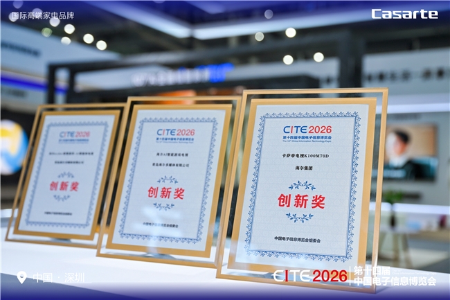 4月9日,第十四届中国电子信息博览会(CITE 2026)在深圳举行。在这场由工信部与深圳市政府联手打造的国家级电子信息全产业链盛会上,卡萨帝电视指挥家M70D、海尔电视Seeker V80D等多款核心产品亮相智慧生活展区。卡萨帝电视M70D、海尔AI智能游戏电视H8D、海尔AI智能体电视Seeker V80D凭借在场景融合与智能交互上的突破,获得评审委员会专家一致好评,斩获博览会创新大奖。