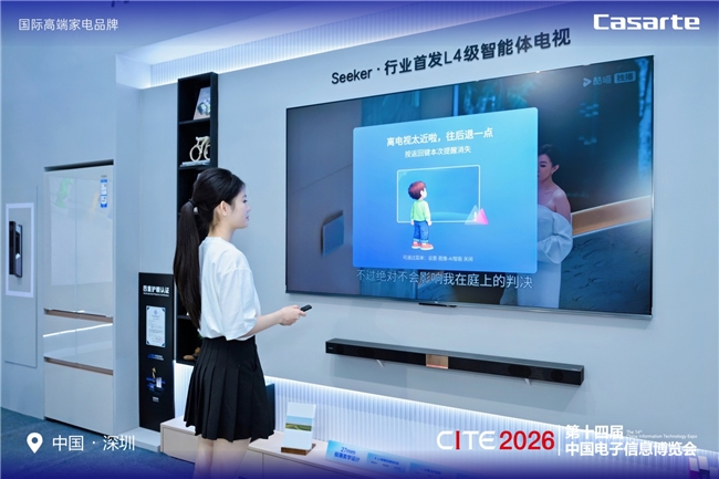 从卡萨帝到海尔,从107吋 21:9 AI全画幅智家屏到天悦零添加电视,海尔电视在CITE 2026上清晰展现了从“被观看的设备”向“智慧家庭中枢”的进化路径。海尔视听产业卡萨帝产品总经理孙芳表示,AI不止是技术,更是陪伴、是守护、是全新的生活方式。未来,海尔视听将持续以用户为中心,以全栈AI技术重新定义电视价值,把更智慧、更健康、更精致的产品带入每一个家庭,开启电视智慧新纪元。